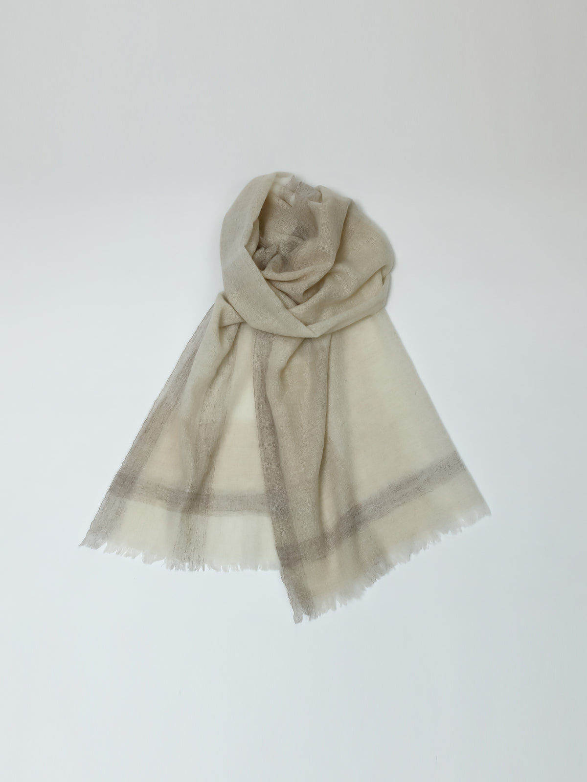 首元に掛けたときに重さを感じない、落ち着いた色合いのエアリーカシミヤストール。軽いため、季節を問わずに使用できます(男女兼用)。大き目のサイズなので、巻き方もお好みでアレンジできる優れもの。