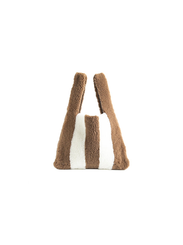 やわらかい短毛のムートンバッグ。配色仕様でカジュアル&スポーティ―感が楽しめるバッグです。持ち手の片方をもう片方に通して使うこともできます。