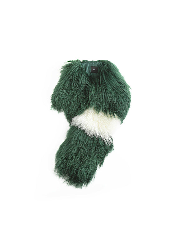 【FLEI】チベットラム ロングマフラー|グリーン×ホワイト、ホワイト×キャメル(2カラー)