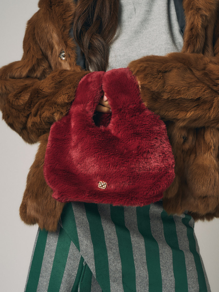 フワフワな柔らかな手触りのレッキスラビット風のフェイクファーバッグ
